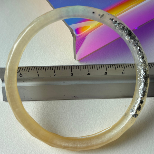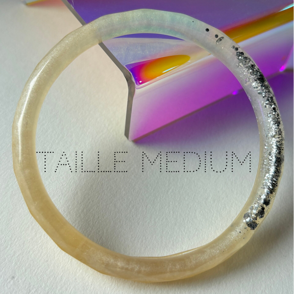 ✨ Jonc en résine facetté blanc et doré nacré, paillettes argentées.